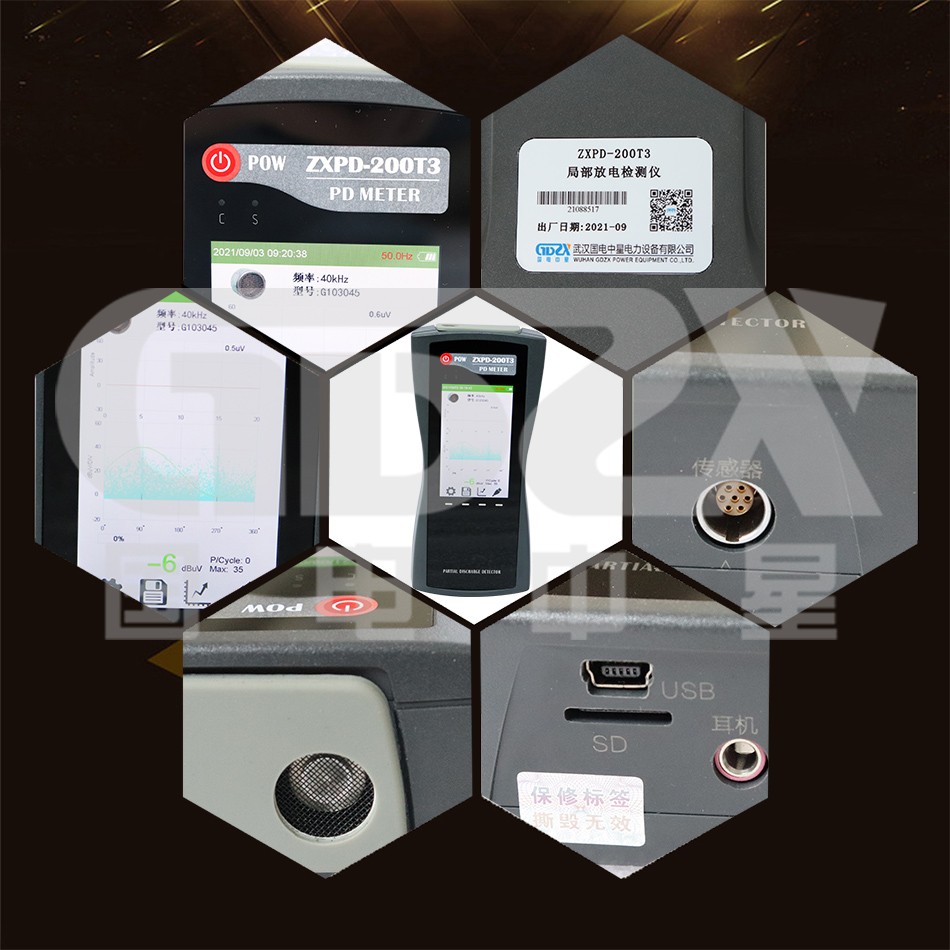 4. 內(nèi)置超聲波傳感器和暫態(tài)地電壓(以下簡稱TEV)傳感器,可外接變壓器、GIS、架空線路、電纜等專用傳感器;