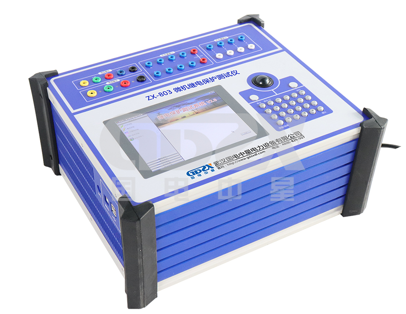 ZX-803三相繼電保護測試儀可對各種繼電器(如電流、電壓、反時限、功率方向、阻抗、差動、低周、同期、頻率、直流、中間、時間等)及微機保護進行檢定,并可模擬各種復雜的瞬時性和轉換性等故障進行整組試驗。