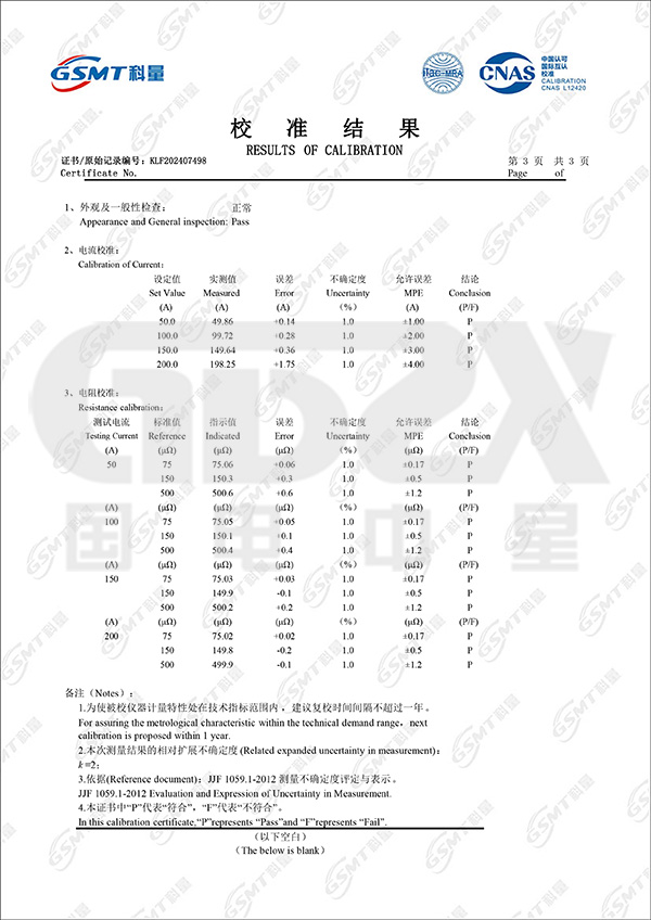 3、測試電流:DC 100A、200A、400A、600A 四檔固定輸出