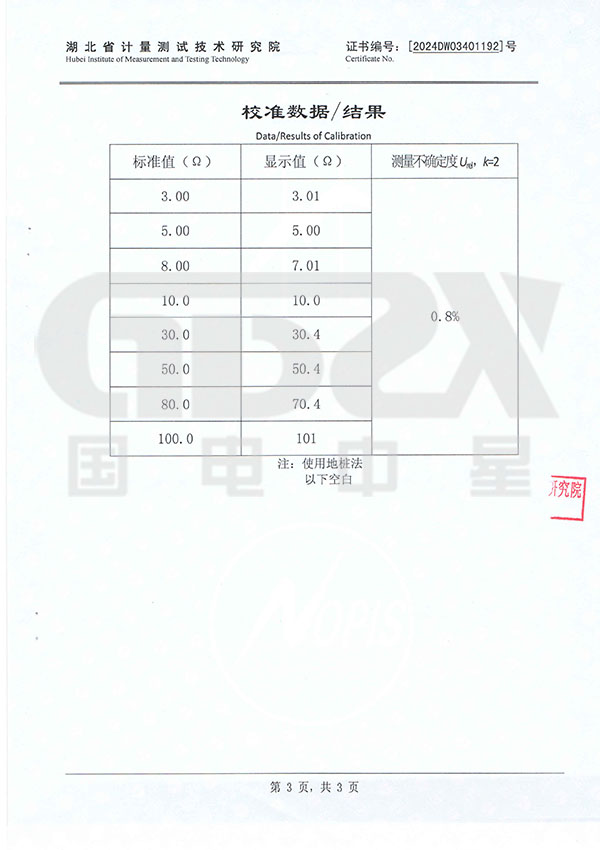 3. 測量范圍廣、分辨率高:量程從0.01Ω~200Ω,分辨率0.01Ω,對0.7Ω以下接地電阻,也能準(zhǔn)確測量。